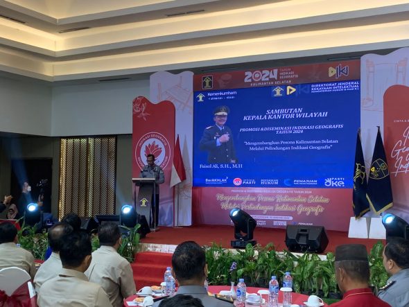 BANJARMASIN, KALIMANTANLIVE.COM – Kantor Wilayah Kementerian Hukum dan Hak Asasi Manusia (Kanwil Kemenkumham) Kalimantan Selatan menggelar acara “Promosi dan Diseminasi Indikasi Geografis Kalimantan Selatan Tahun 2024” di Hotel Rattan Inn Banjarmasin, Senin (22/1/2024).
