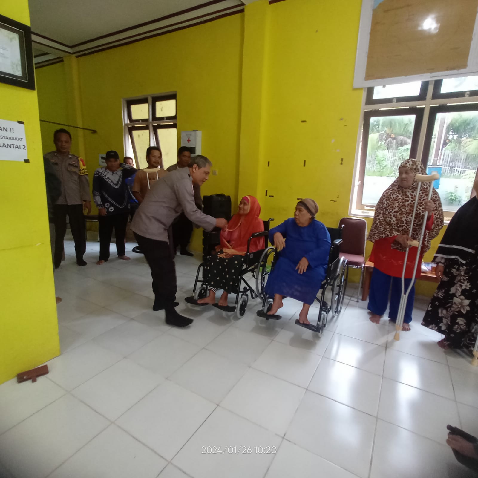 Acara diawali dengan kata sambutan kepala desa atas kehadiran dan bantuan disalurkan kepada warganya. Pasalnya, bantuan berupa 5 (lima) kursi roda dan 5 (lima) tongkat bagi lansia itu, 2 (dua) kursi roda telah diserahkan langsung oleh Kapolda saat hadir dalam kunjungan kerjanya pada akhir Desember 2023 lalu sehingga bantuan yang diserahkan pada pertemuan Jum’at curhat itu tinggal sisanya yakni 3 (tiga) kursi.