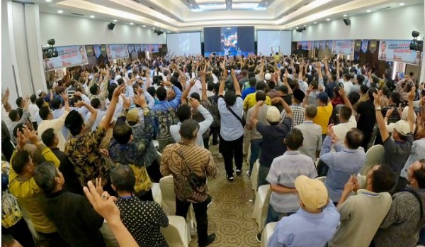 Lagu “Oke Gas Prabowo-Gibran”menjadi penyemangat ribuan relawan yang datang dan menguatkan seluruh akar rumput dari 13 Kabupaten Kota, untuk mendeklarasikan diri di hotel Rattan inn Banjarmasin, Minggu (28/1/2024).