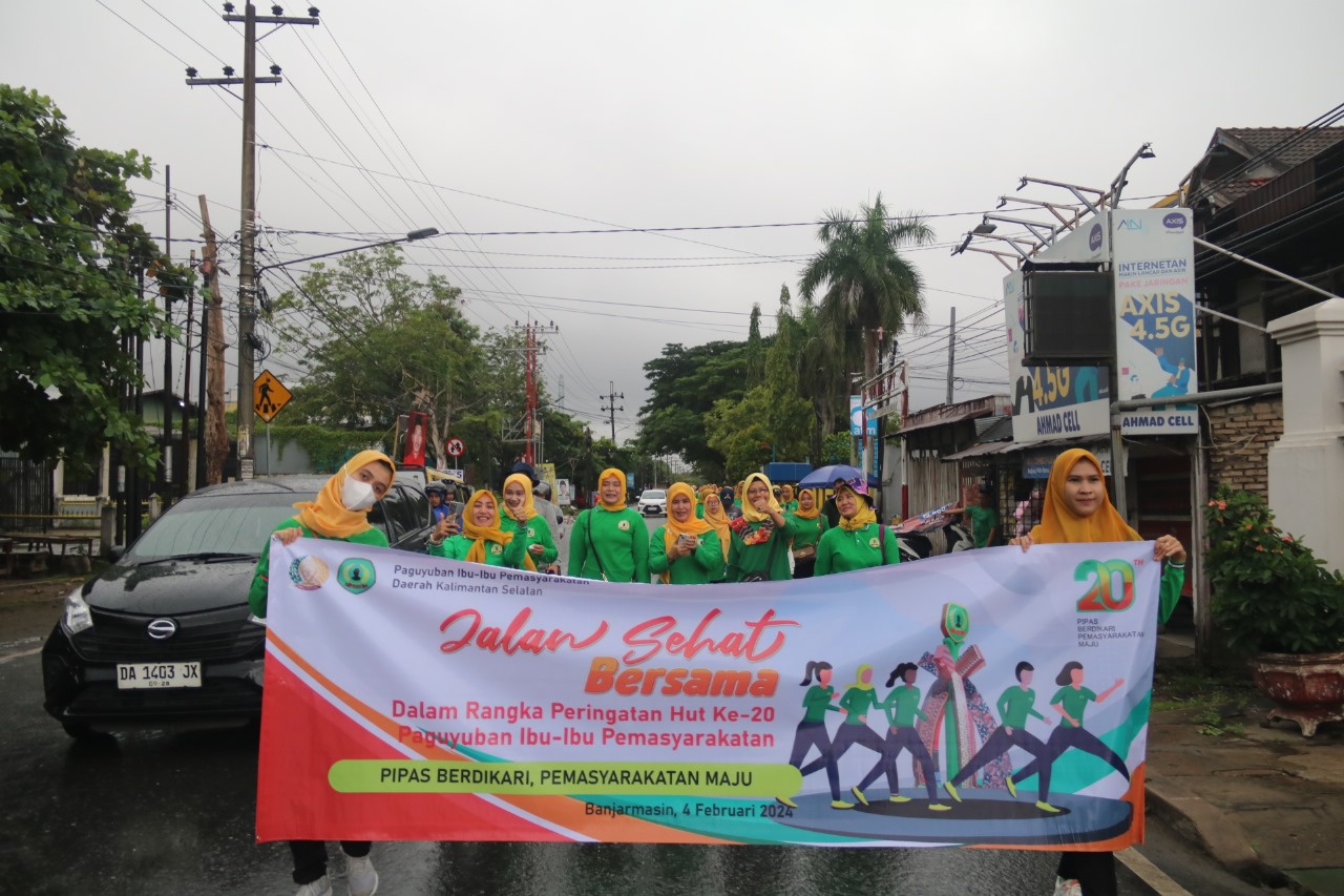 BANJARMASIN, KALIMANTANLIVE.COM – Kantor Wilayah Kementerian Hukum dan HAM (Kanwil Kemenkumham) Kalimantan Selatan (Kalsel) menggelar acara jalan sehat bersama dalam rangka memperingati Hari Ulang Tahun ke-20 Paguyuban Ibu-Ibu Pemasyarakatan (PIPAS).