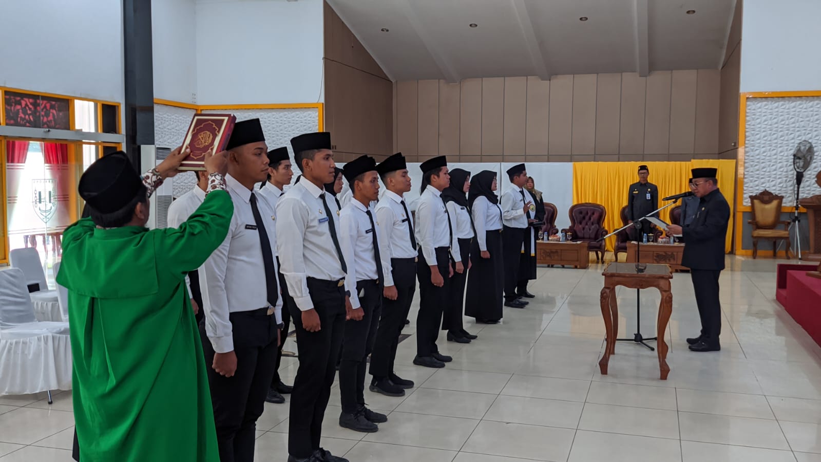 Pelantikan dan pengambilan sumpah janji sekaligus penyerahan SK PNS dipimpin Bupati Tabalong, Anang Syakhfiani berlangsung di Pendopo Bersinar, Senin (5/2/2024).