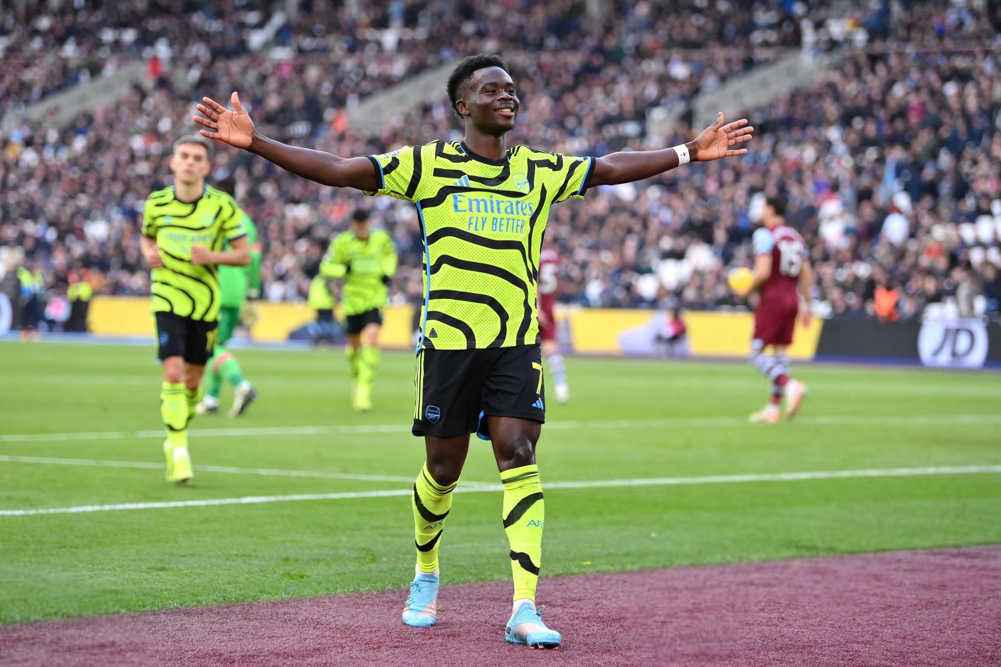 Winger muda andalan Arsenal, Bukayo Saka, berhasil mencetak dua gol masing-masing pada menit ke-41 lewat titik putih dan menit ke-63.