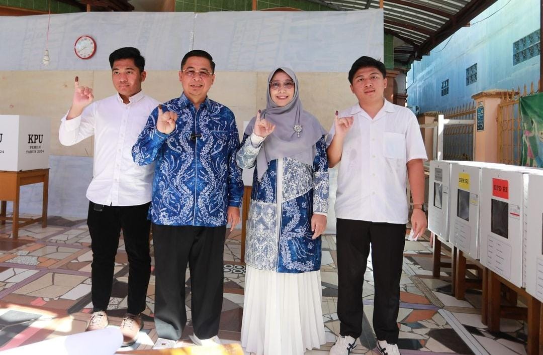 Bila beberapa tahun lalu ia hanya berdua dengan istrinya, Hj Siti Wasilah mendatangi TPS, maka hari Rabu (14/02/2024), orang nomor satu di kota berjuluk seribu sungai ini terlihat datang ke TPS bersama istri dan kedua putranya, Jundi Muhammad dan Syarif Hidayatullah.
