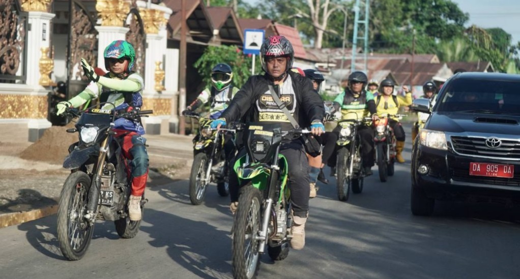 Rombongan Trail Adventure dilepas di halaman pendopo Bupati HSS, dan langsung dipimpin oleh Pj Bupati Hulu Sungai Selatan sekaligus Kadispora Kalsel, Hermansyah.
