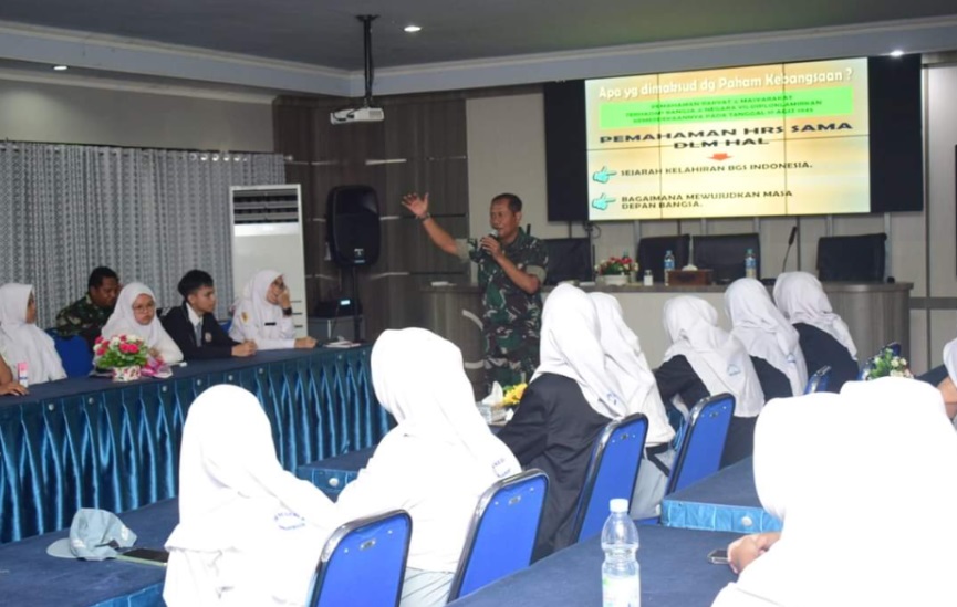 BANJARMASIN, KALIMANTANLIVE.COM – TNI Manunggal Membangun Desa (TMMD) ke 119, Kodim 1007/Banjarmasin berikan penyuluhan Wawasan Kebangsaan (Wasbang) kepada siswa-siswi SMK 3 Banjarmasin, bertempat di Jalan Pramuka, Kelurahan Sungai Lulut, Kecamatan Banjaemasin Timur, Senin (26/02/2024).