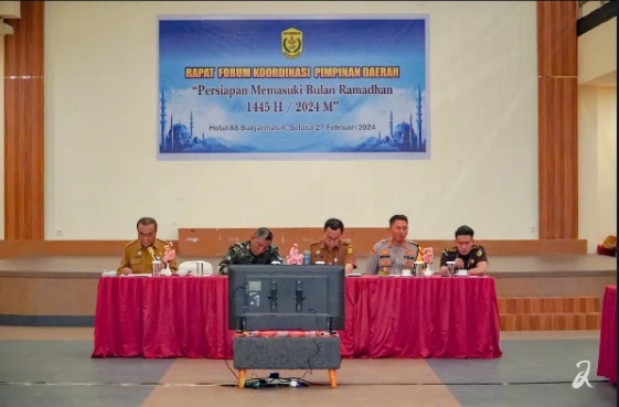 BANJARMASIN, KALIMANTANLIVE.COM – Sekretaris Daerah (Sekda) Kota Banjarmasin, Ikhsan Budiman memimpin Rapat bulanan Forkopimda Kota Banjarmasin dalam rangka persiapan menjelang Bulan Suci Ramadhan 1445 Hijriah, berlangsung di Hotel 88 Banjarmasin, Selasa (27/2/2024).