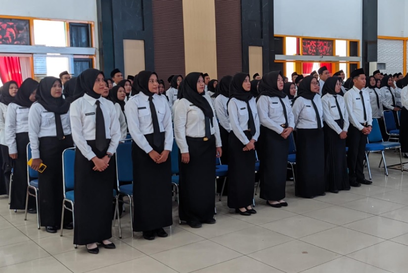Hal itu disampaikannya saat pelantikan dan pengambilan sumpah sekaligus penyerahan SK PPPK TA 2023 dan SK CPNS lulusan Polbit STTD TA 2023 di Pendopo Bersinar, Selasa (27/02/2024).