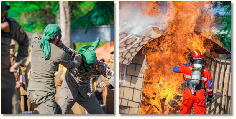 Acara ditutup dengan atraksi bela diri dari anggota Satpol PP memperagakan teknik-teknik bertarung yang mengesankan, menunjukkan kemahiran dan ketangguhan mereka dalam menghadapi berbagai situasi yang memerlukan tindakan cepat dan tepat.
