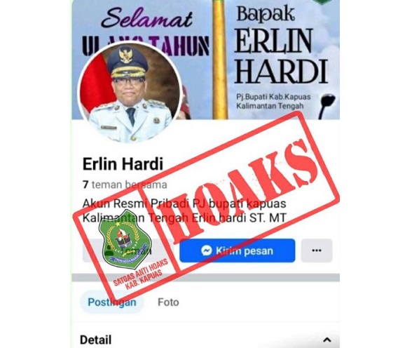 Hoaks, Akun Palsu Mengatasnamakan Pj Bupati Kapuas