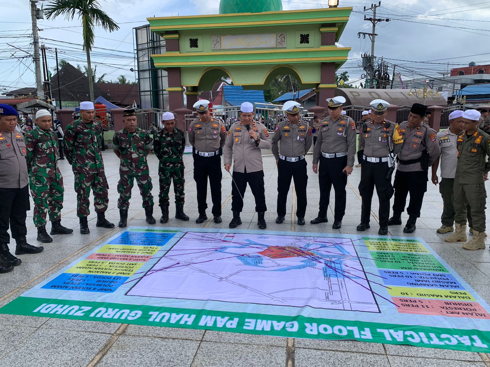 “Untuk floating, personil akan kita bagi di sekitar kubah dan juga Masjid Jami, di jalan raya, maupun dipersimpangan yang menjadi jalur keluar masuk kendaraan para jemaah,” jelas Arwin.