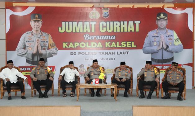 RANGKAIAN kegiatan Kapolda Kalsel Irjen Pol Winarto pada acara Jumat Curhat di Balairung Tuntung Pandang, Jumat (22/3/2024) sore. (foto: Humas Polres Tala)