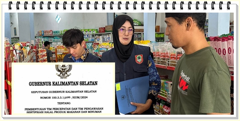 Kemudian, tim pengawasan sertifikasi halal produk makanan dan minuman diantaranya, Ketua Bidang Pengawasan pada Satuan Tugas Halal Kantor Wilayah Kementerian Agama Provinsi Kalsel sebagai Ketua, Kepala Badan Penyelenggara Jaminan Produk Halal sebagai Anggota dan lainnya.