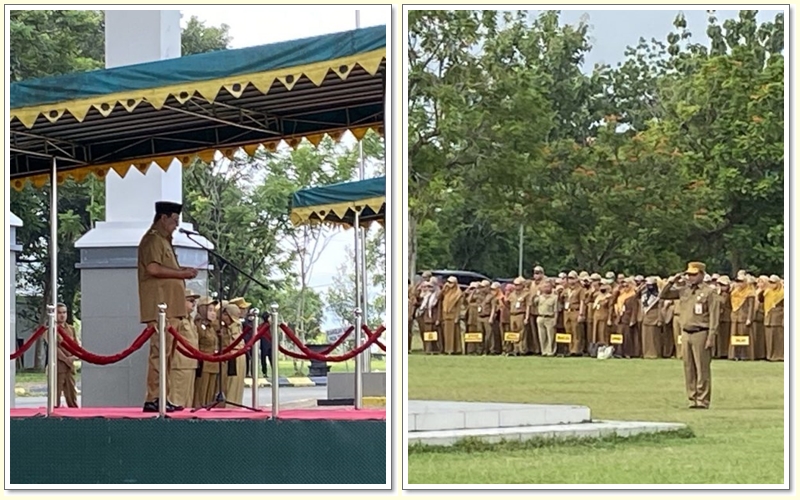 Pada Apel Gabungan kali ini, diawali dengan penyampaian tausiah oleh Guru Ahmad Sufian Al Banjari, sedangkan untuk pembagian tugas, Kepala Dinas PMPTSP selaku komandan, Kepala Dinas Kominfo pembacaan UUD 1945, Kepala Biro Adpim Visi Misi Kalsel, Kepala Disbunnak pembacaan Panca Prasetya, Kepala Biro Administrasi Pemerintahan pembacaan doa.