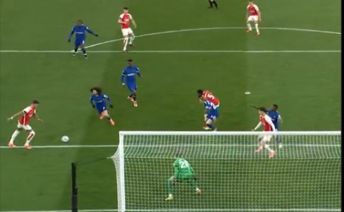 Bomber Chelsea itu bisa menebar ancaman lewat penetrasi yang dilakukannya pada menit ke-38. Tetapi aksinya bisa dihentikan oleh Gabriel yang berbuah sepak pojok buat tim tamu.