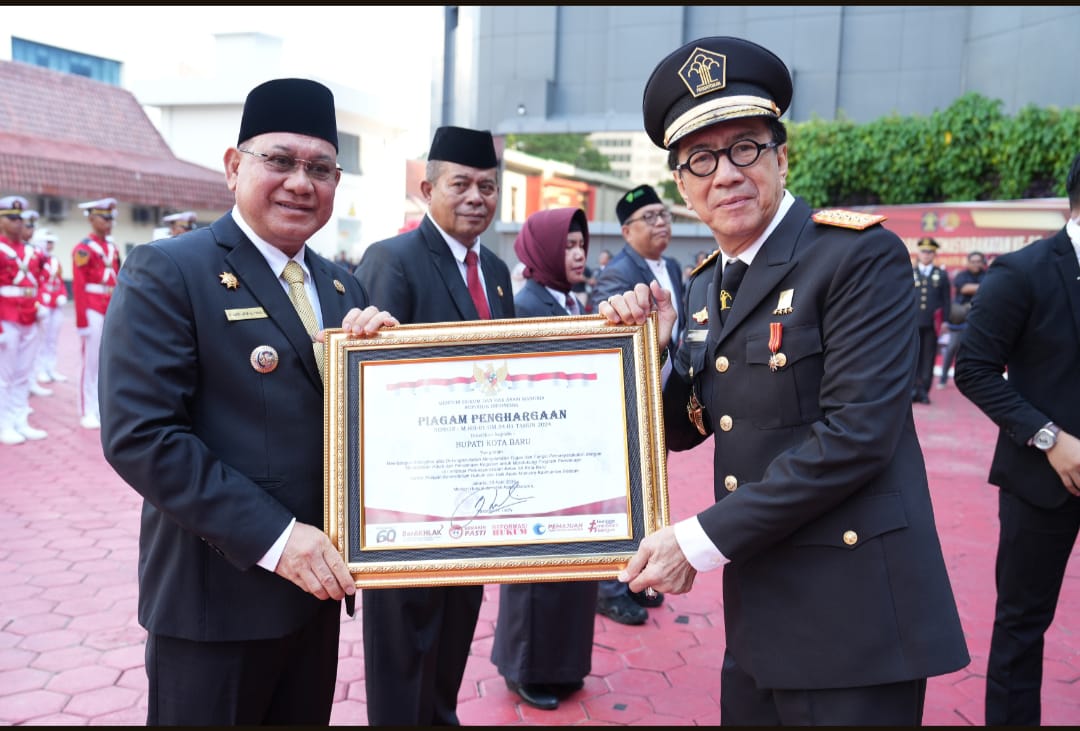 KOTABARU, KALIMANTANLIVE.COM – Bupati Kotabaru, H Sayed Jafar SH menerima penghargaan langsung dari Kementrian Hukum dan Hak Asasi Manusia Republik Indonesia (Kemenkumham RI)pada, Senin (29/04/2024).