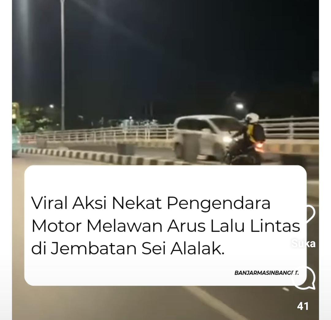 BANJARMASIN, KALIMANTANLIVE.COM – Video viral aksi pengendara yang ugal-ugalan dan melawan arus di Jembatan Sungai Alalak perbatasan antara Kota Banjarmasin dan Kabupaten Barito Kuala beredar di media sosial.