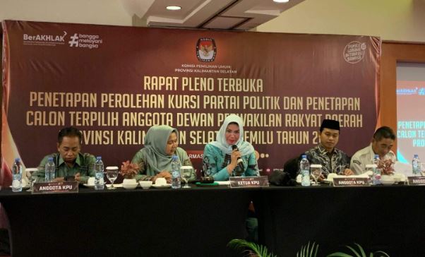 BANJARMASIN, Kalimantanlive.com – Komisi Pemilihan Umum (KPU) Provinsi Kalimantan Selatan (Kalsel) menetapkan perolehan kursi partai politik (Parpol) dan 55 calon anggota DPRD Kalsel terpilih pada Pemilihan Legislatif 2024 lalu.