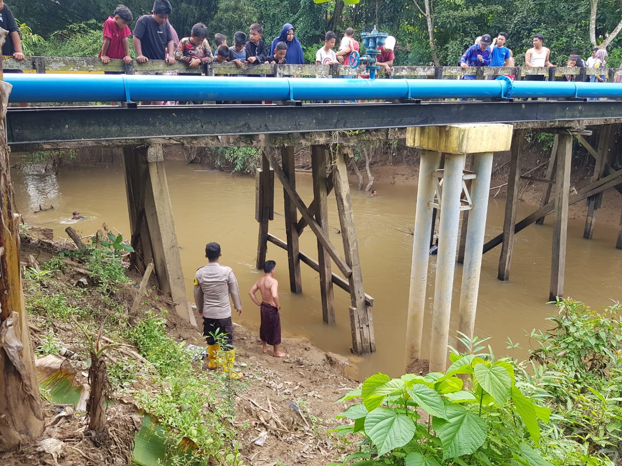 Namun saat berada di batang kayu atau lanting, korban jatuh terpeleset hanyut ke sungai yang diperkirakan dengan kedalaman dua meter dengan arus normal.