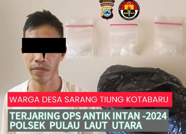 KOTABARU, KALIMANTANLIVE.COM – Polsek Pulau Laut Utara, Polres Kotabaru berhasil mengungkap kasus narkotika dengan menangkap seorang pria berinisial N (31), warga Jalan Berangas Km 07 RT.002, Desa Sarang Tiung, Kecamatan Pulau Laut Sigam, Kabupaten Kotabaru, Selasa (28/5/2024).