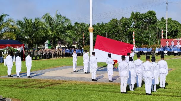 Upacara dipimpin Dandim 1001/HSU-Balangan, Letkol Kav Gunantyo Ady Wiryawan yang diikuti peserta upacara yang terdiri dari TNI, Polri, ASN dan juga siswa.