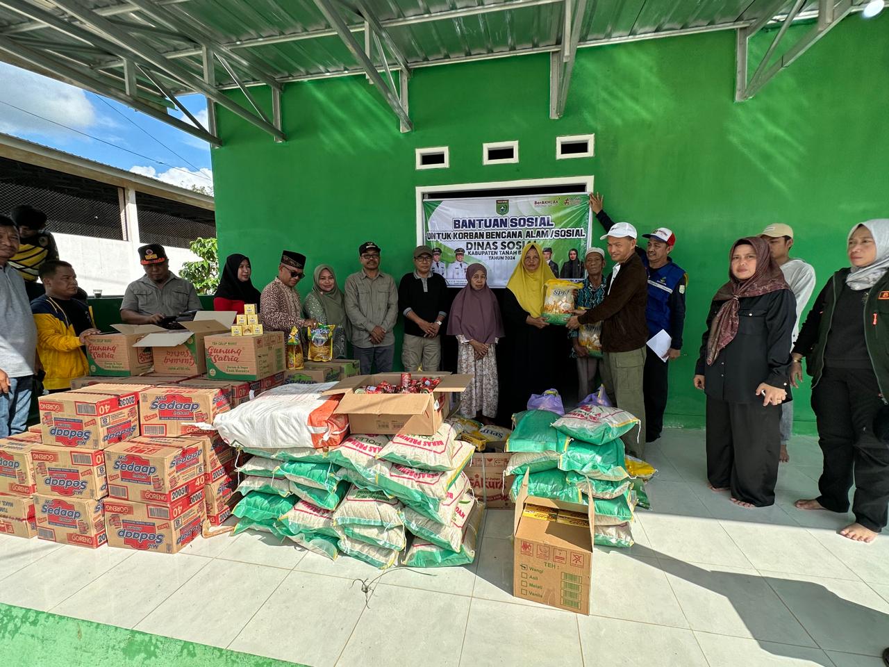 Ada sebanyak 150 paket sembako yang diserahkan kepada warga yang terdampak banjir di Desa Karang Bintang Kecamatan Karang Bintang, Sabtu (8/6/2024).