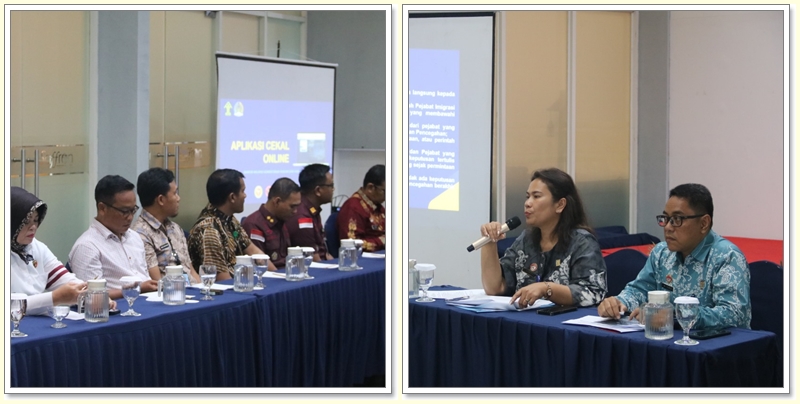 Junita menjelaskan topik utama rapat, yaitu penggunaan Aplikasi Cekal Online dan peran imigrasi dalam mencegah Tindak Pidana Perdagangan Orang (TPPO) dan Pekerja Migran Indonesia (PMI) Non Prosedural melalui program Desa Binaan Imigrasi di Kalimantan Selatan.