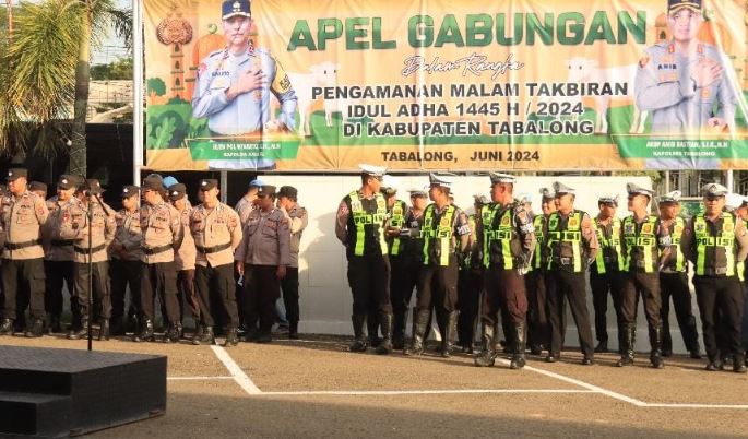 TANJUNG, KALIMANTANLIVE.COM – Kepolisian Resor (Polres) Tabalong menggelar apel gabungan pengamanan malam takbiran Idul Adha 1445 Hijriyah.