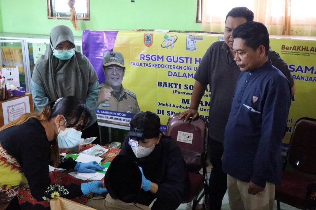 BANJARMASIN, KALIMANTANLIVE.COM – Pemerintah Provinsi Kalimantan Selatan (Kalsel) melalui Rumah Sakit Gigi dan Mulut (RSGM) Gusti Hasan Aman Provinsi Kalsel berkolaborasi dengan Fakultas Kedokteran Universitas Lambung Mangkurat (FK ULM) melaksanakan bakti sosial di salah satu sekolah Madrasah Ibtidaiyah Muhammadiyah 3 Al Furqan di Kota Banjarmasin.