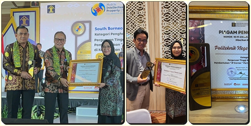 Penghargaan tersebut diberikan oleh Kanwil Kemenkum HAM Kalsel atas kontribusi Politeknik Negeri Tanah Laut dalam pembentukan IP Corner pertama di lingkup Perguruan Tinggi Negeri (PTN) di Provinsi Kalimantan Selatan.