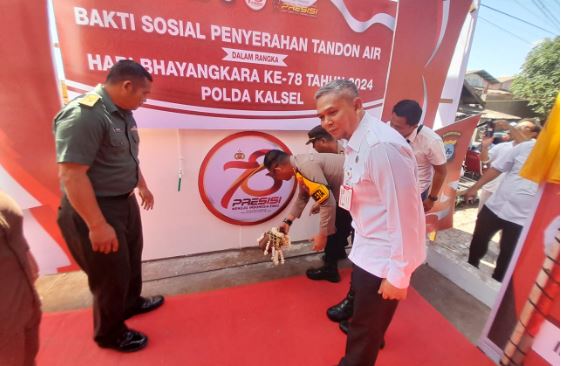 Penyerahan bantuan penampungan air bersih berupa tandon ini dipimpin langsung oleh Kapolresta Banjarmasin, Kombes Pol Sabana Atmojo Martisumito, bersama dengan jajaran Unsur Forum Komunikasi dan Pimpinan Daerah (Forkopimda).