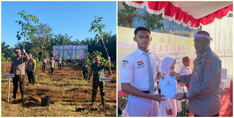 Kapolres mengatakan penanaman bibit penghijauan itu dalam rangka peringatan HUT ke-78 Bhayangkara tahun 2024. Jenis bibitnya yaitu Spathodea 500 batang dan Pulau juga 500 batang.