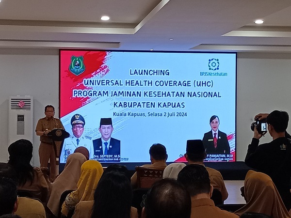 Seremonial peluncuran UHC Program Jaminan Kesehatan Nasional (JKN) Kartu Indonesia Sehat (KIS) dilaksanakan pada Selasa (2/7/2024) di Aula Rumah Jabatan Bupati Kapuas, Jalan Jenderal Sudirman, Kuala Kapuas.