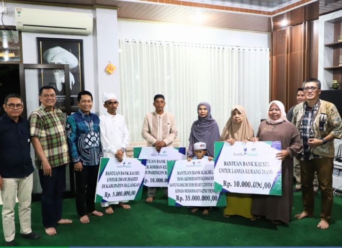 Bantuan dari UPZ Bank Kalsel tersebut diserahkan secara simbolis oleh Bupati Balangan, H Abdul Hadi kepada penerima bantuan dan didampingi oleh Direktur Utama Bank Kalsel, Fachrudin; Direktur Kepatuhan Bank Kalsel, IGK Prasetya; dan Direktur Operasional Bank Kalsel, Ahmad Fatrya Putra.