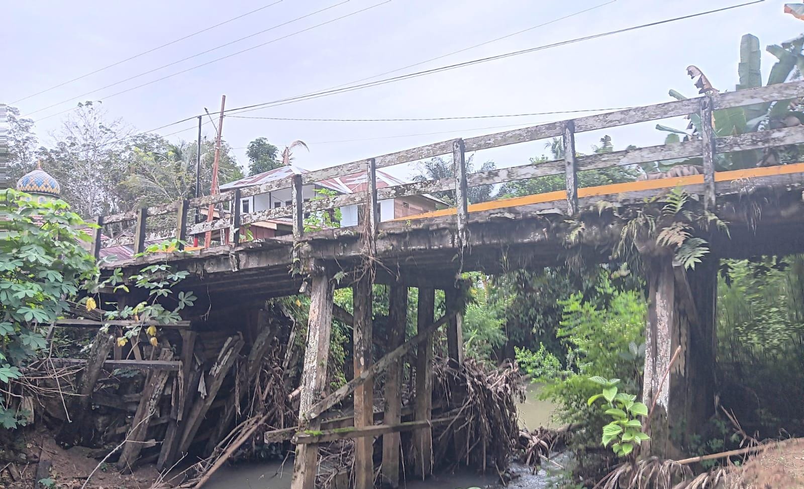“Kondisi jembatan sudah sangat parah, miring dan tidak bisa dilewati truk-truk bermuatan,” ungkap Kepala Desa Muang, Mujahidin, Kamis (11/07/2024).