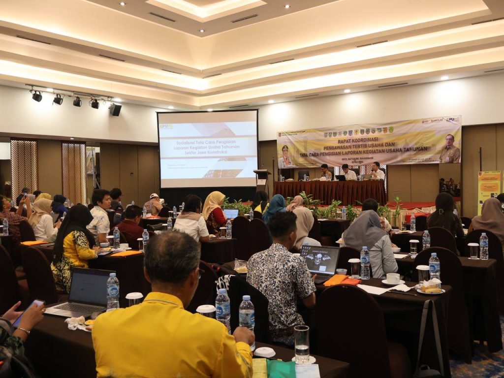 BANJARMASIN, KALIMANTANLIVE.COM – Dalam mendukung pengawasan penyelenggaraan jasa konstruksi sesuai dengan Peraturan Menteri Pekerjaan Umum dan Perumahan Rakyat nomor 1 tahun 2023, Dinas Pekerjaan Umum dan Penataan Ruang (PUPR) Provinsi Kalimantan Selatan (Kalsel) mengadakan rapat koordinasi pengawasan tertib usaha dan tata cara pengisian laporan kegiatan usaha tahunan di Banjarmasin, Kamis (18/7/2024).