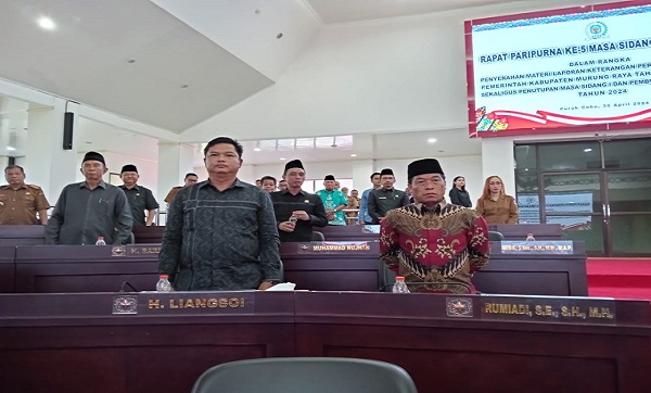 PURUK CAHU, Kalimantanlive.com – Dewan Perwakilan Rakyat Daerah(DPRD)Kabupaten Murung Raya, leksanakan kegiatan rapat paripurna ke II masa sidang II tahun 2024 terkait persetujuan lambang DPRD dan sekaligus peyerahan KUA-PPAS berlangsung di ruang rapat DPRD. (19/07/2024)