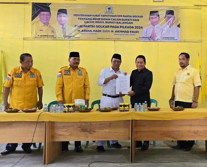 “Partai Golkar sudah memutuskan arah politiknya pada helatan Pilbup Balangan 2024. Sesuai keputusan DPP, Golkar memutuskan memberikan rekom kepada pasangan Abdul Hadi dan Ahmad Fauzi,’’ ungkapnya.