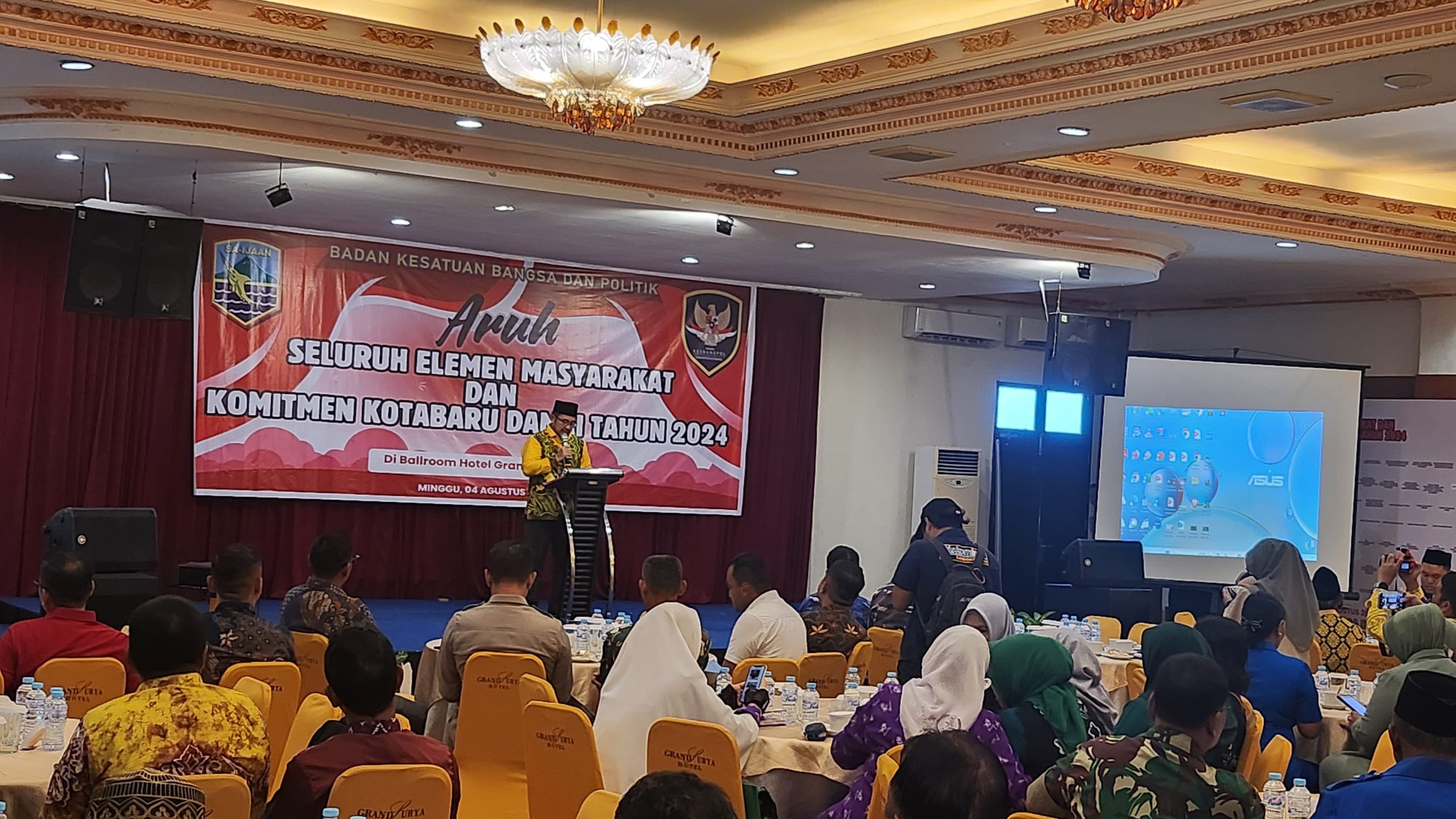 KOTABARU, KALIMANTANLIVE.COM – Ratusan peserta dari berbagai elemen masyarakat mengikuti Aruh Seluruh Elemen Masyarakat dan Komitmen Kotabaru Damai Tahun 2024 yang berlangsung di Hotel Grands Surya, Minggu (4/8/2024).