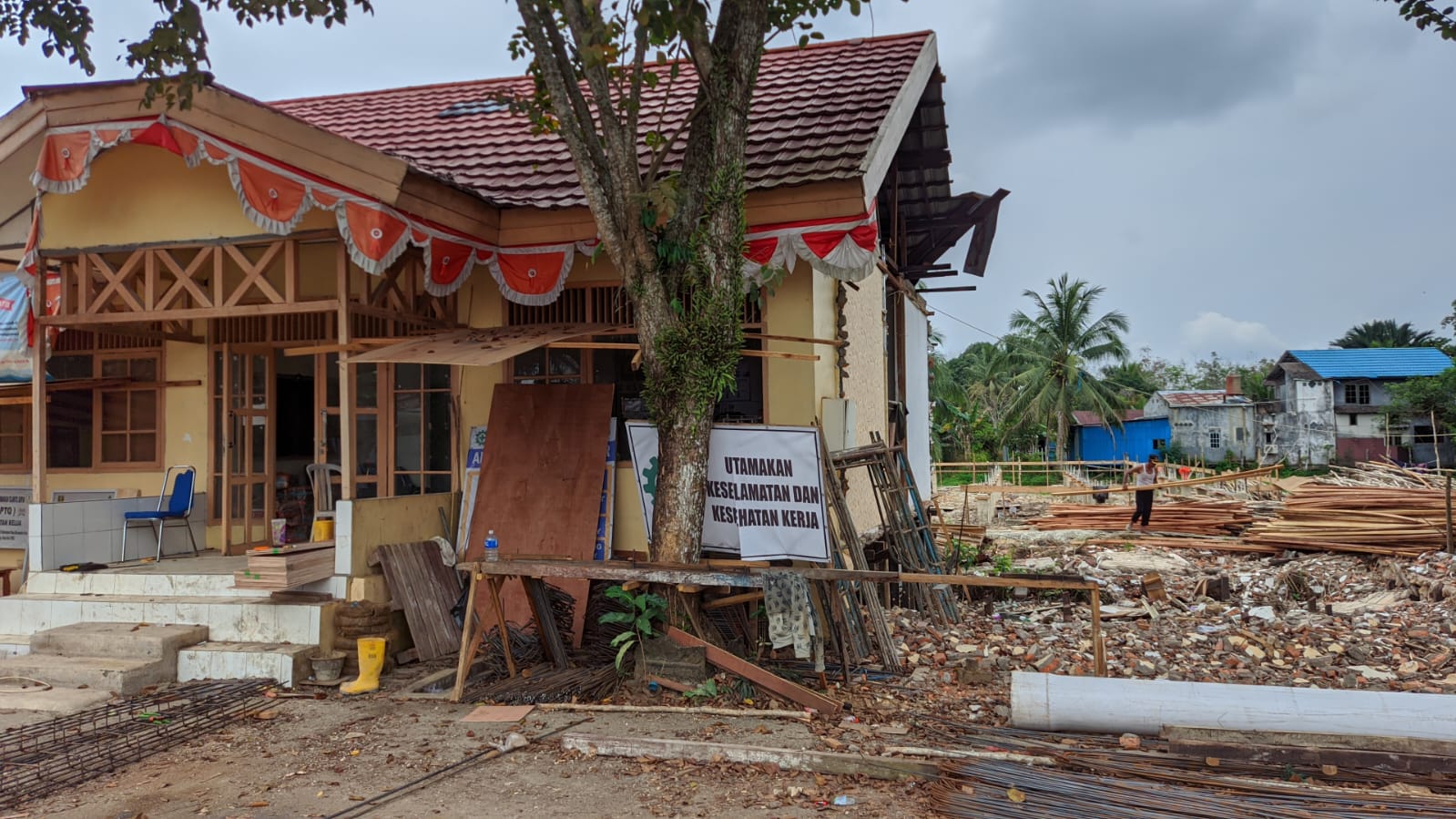 Berdasarkan pantauan dilapangan, tampak terlihat sebagian bangun kantor lama sudah dibongkar.