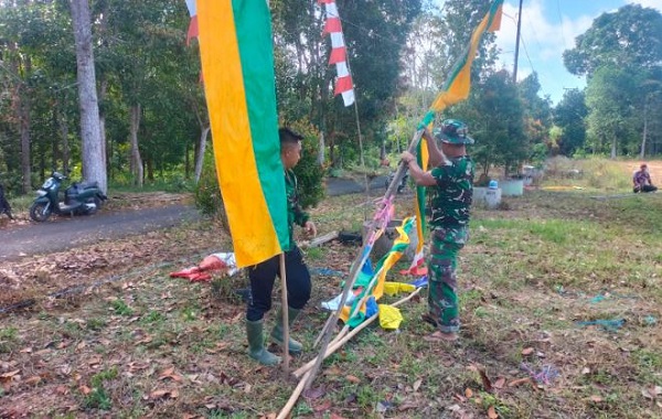 “Kami bersama warga Desa Gumbil bergotong royong membersihkan lapangan bola untuk persiapan berbagai lomba tradisional yang akan digelar dalam rangka menyambut Hari Kemerdekaan RI ke-79,” ujar Lettu Hendri.