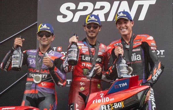 Rekan setim Pecco Baganaia di Ducati, Enea Bastianini mengakhiri balapan di posisi keempat, disusul Jack Miller dan Franco Morbidelli finis kelima dan enam.