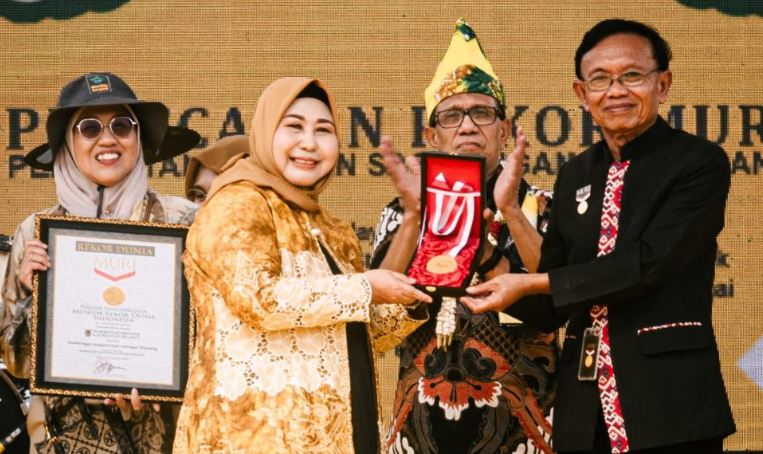 Setelah menyaksikan megahnya kain sasirangan yang terbentang, Direktur Operasional MURI Yusuf Ngadri secara resmi menyerahkan piagam pemecahan rekor kepada Acil Odah, disaksikan oleh Ketua PWI Pusat, Hendry Ch Bangun.