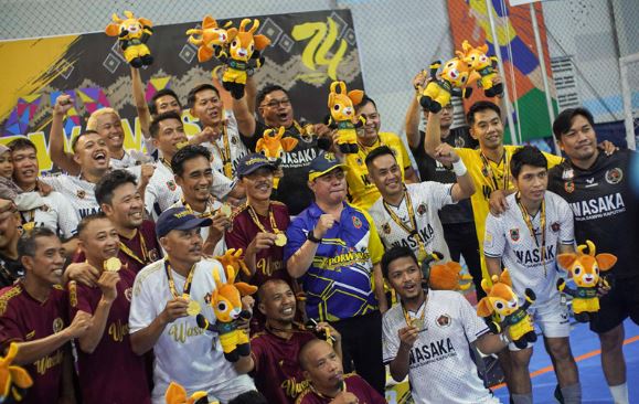 Dua medali emas Porwanas XIV tersebut diraih Tim Futsal Kalsel kategori U-41+ dan U27+ setelah menundukkan Tim Futsal Lampung U-41+ dan Lampung U-27+ pada babak final yang berlangsung di Borneo Indoor Futsal, Banjarmasin, Sabtu (24/8/2024).