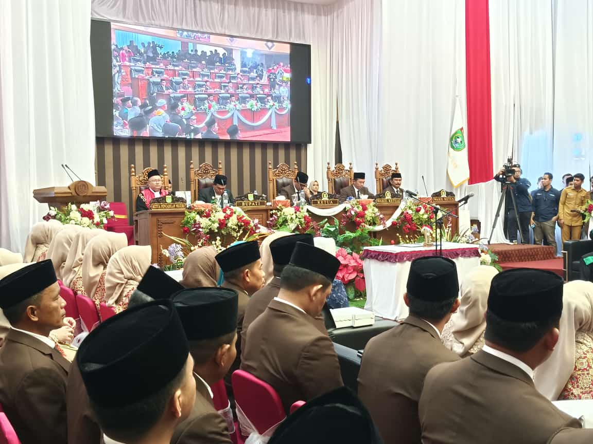 Moment sakral pengambilan sumpah jabatan disaksikan oleh masyarakat, baik yang berhadir di halaman gedung DPRD melalui virtual yang disediakan, maupun dari media tv dan sosial media.