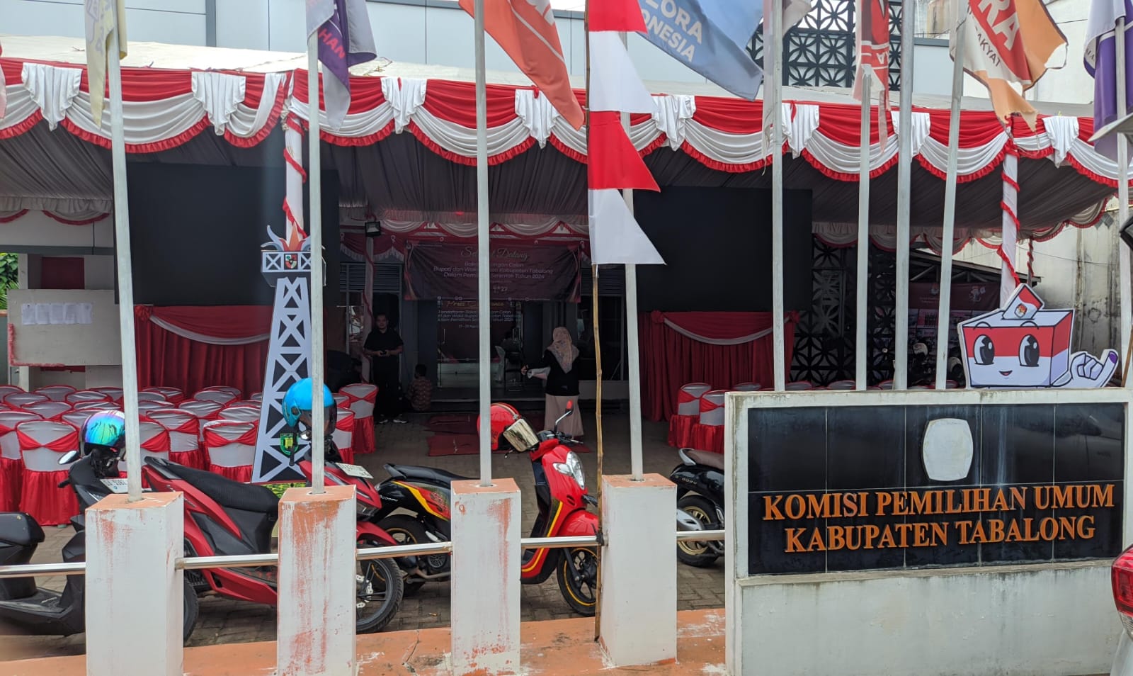 KPU Tabalong telah menyiapkan fasilitas seperti tenda, kursi dan videotron untuk menyambut paslon yang akan melakukan pendaftaran.