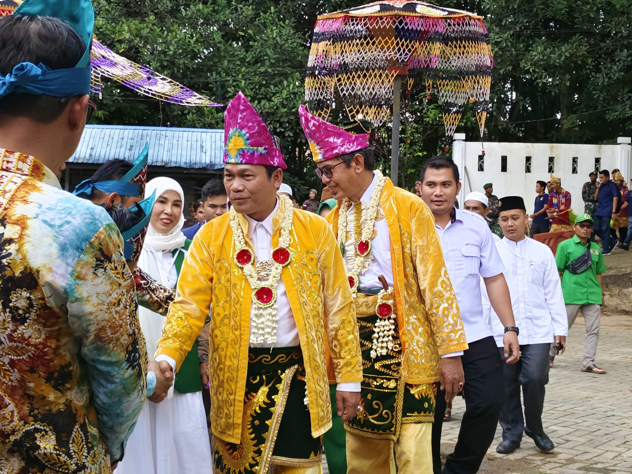 Kedatangan Abdul Hadi dan Ahmad Fauzi yang berpakaian adat Banjar ini diiringi alat musik marawis dan lantunan habsyi sepanjang jalan menuju aula KPU Balangan yang diikuti para pimpinan partai pengusung beserta anggota.