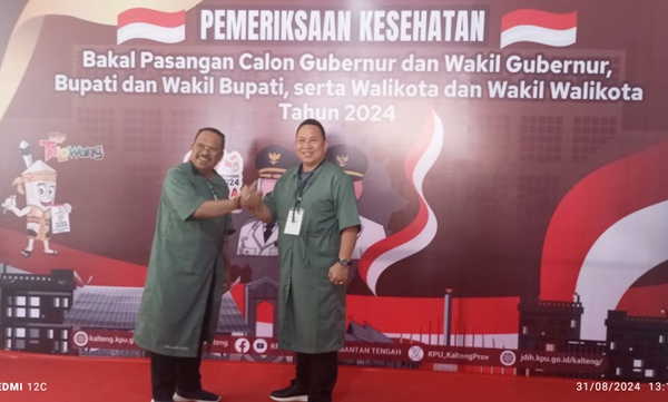 PALANGKA RAYA,Kalimantanlive.com – Pasangan calon bupati dan wakil bupati Murung Raya (Mura), Drs. H. Nuryakin, M.Si dan Dr. Doni, SP., M.Si, mengikuti rangkaian pemeriksaan kesehatan yang merupakan salah satu tahapan penting dalam Pilkada 2024. Pemeriksaan tersebut berlangsung di RSUD dr. Doris Sylvanus Palangka Raya pada Sabtu,(31/08/2024).