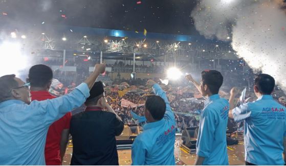 MUARA TEWEH. Kalimantanlive.com – Puluhan ribu manusia memadati acara Deklarasi dan Hiburan Rakyat Pasangan Bakal Calon Bupati Akhmad Gunadi Nadalsyah dan Sastra Jaya (AGI – SAJA) di Arena Terbuka Tiara Batara Muara Teweh. Senin, 9 September 2024 malam.