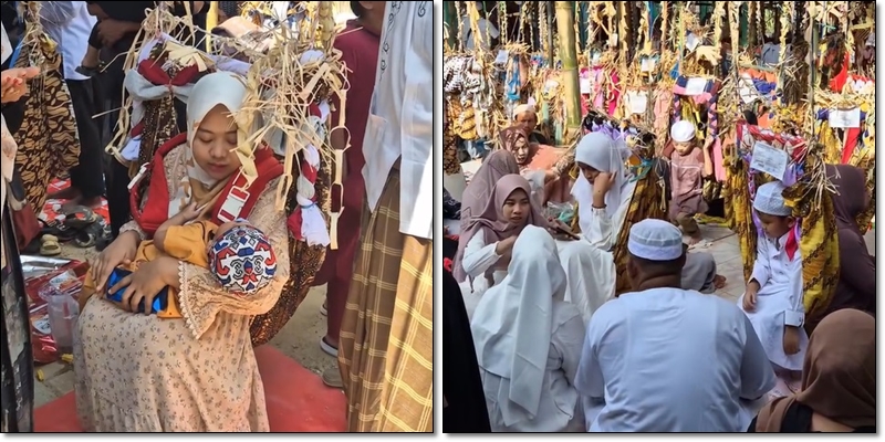 Video yang beredar juga menampilkan kesibukan warga setempat yang menghias ayunan tradisional Banjar dengan berbagai ornamen khas, menambah semarak acara ini.