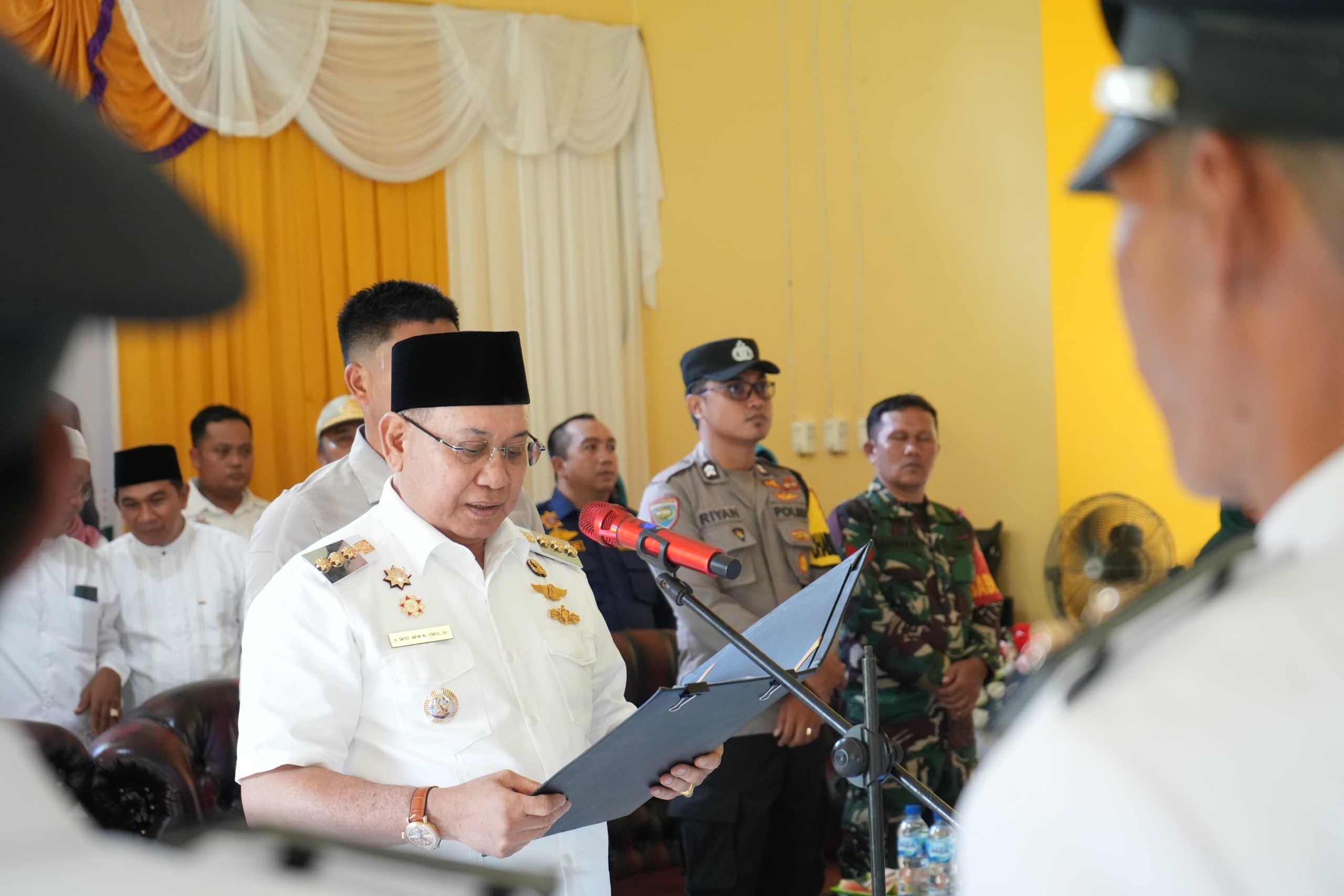 KOTABARU, KALIMANTANLIVE.COM – Bupati Kotabaru H Sayed Jafar SH kembali mengukuhkan perpanjangan masa jabatan kepala desa dan anggota badan permusyawaratan desa (BPD) di dua kecamatan, Kelumpang Utara dan kecamatan Kelumpang Tengah. Pengukuhan dilaksanakan di masing-masing kantor kecamatan setempat, Rabu (18/9/2024).
